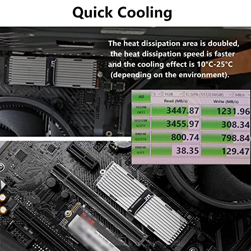 ✪ Buoni effetti di raffreddamento per SSD M.2: Dissipatore M.2 adatto per SSD M.2 NGFF 2280 dimensioni 22x80mm. Raffreddare il vostro SSD M.2 a una temperatura sicura per evitare surriscaldamento e strozzamento, migliorando le prestazioni del computer.