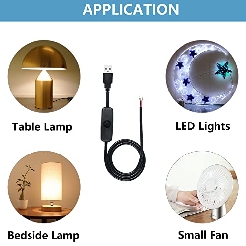 Cavo di alimentazione USB maschio a 2 pin a 2 fili con pulsante on/off, per fai da te. Può essere utilizzato con qualsiasi dispositivo con USB da 5 V. Come cavo di alimentazione registratore di guida, lampada da tavolo a LED, ventilatore USB, lampada da comodino e altri dispositivi elettrici periferici per computer a bassa potenza.