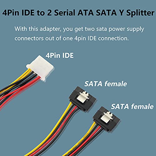 ✪ Adattatore da 4 pin IDE a 2 x 15 pin SATA cavo Y: è possibile utilizzare questo connettore SATA Y per mantenere un vecchio alimentatore funzionante con varie parti PC più recenti. E collegare i dischi rigidi Serial ATA o le unità ottiche a un alimentatore con porte Molex LP4