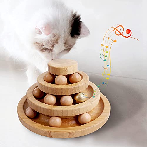 Gelrova Pet Interactive Fun Roller Exerciser 3 livelli Torre di tracce Cat Teaser Ball ToyDue strati rotabili Smart Track Ball Rullo a dondolo Regali (3 strati di bambù)