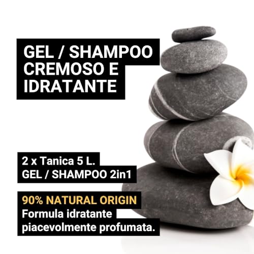 GPQ - Gel/Shampoo 2in1 BLACK Line | 2 Tanica x 5 L. | 90% Natural Origin | Servizi Hotel | Con Balsamo, Senza Parabeni | Hotel, AirBnB, Camping, Agriturismo, Crociera, Gym | Made in UE