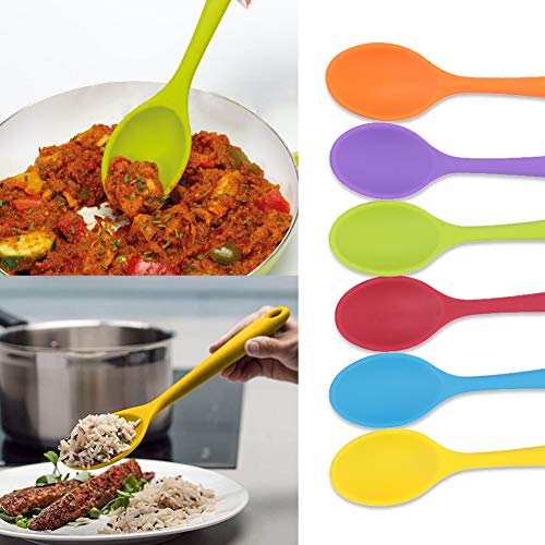 Geluode Cucchiaio in Silicone da 6 Pezzi, Cucchiaio da Cucina Antiaderente, Set di Utensili da Cucina in Silicone Resistente al Calore per mescolare la Cottura