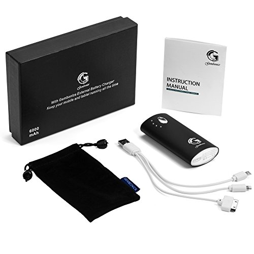 Gembonics Power bank, batteria di backup esterna portatile per iPhone 6, 5, 5S, 5C, 4S, iPod Touch, iPad 2, 3, 4, Mini, Air, Samsung Galaxy S4, S3, S2, Google Nexus 4, 5, HTC One, Nokia Lumia 520, 1020, e la maggior parte dei cellulari inclusi Apple, Android, tablet, PS Vita e altri dispositivi con ricarica USB, 6000 mAh