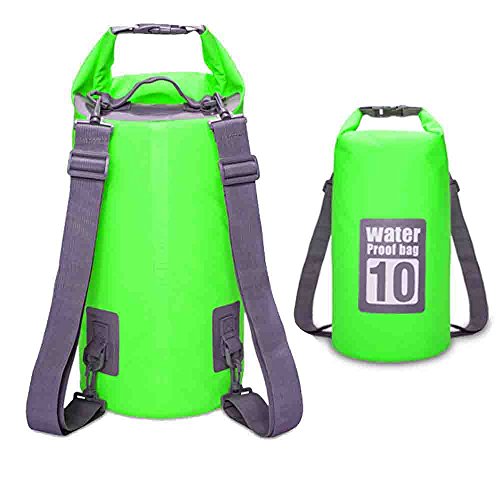 GemCoo Borsa Impermeabile 10L / 20L Borse Stagna Dry Bag per Rafting Viaggio Kayak Canoa Nuoto Pesca Campeggio Snowboard ect attività all'Aperto e Sport d'Acqua (Verde 10L)