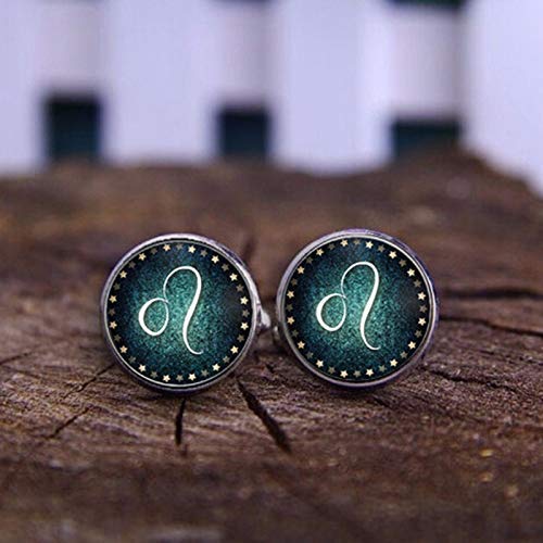 Gemelli da uomo alla moda fatti a mano segni dello zodiaco Leo gemelli in vetro con stampa cabochon Art Pattern gemelli gioielli