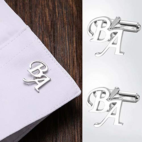 Gemelli personalizzati per uomo, gemelli in argento 925 con iniziali personalizzate con incisione personalizzata Gemelli classici da uomo in acciaio inossidabile Gemelli con lettere dell'alfabeto