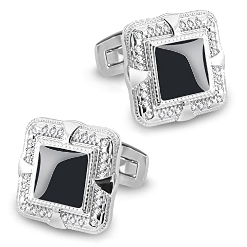 Mr.Van Gemelli da polso in agata nera, stile classico quadrato con cristalli, per uomini d'affari e feste di nozze Cuff Links