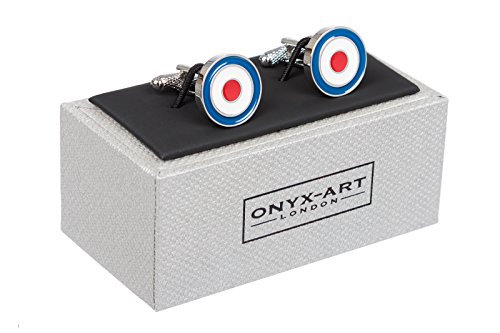 RAF - Gemelli rotondi in scatola d'arte in onice - MOD - Gemelli bersaglio, Misura unica, Onice, senza pietra