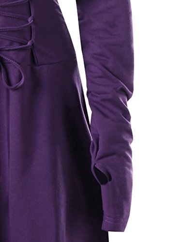 Questo abito longuette con orlo a vita bassa, collo drappeggiato, allacciatura anteriore e posteriore, felpa oversize con cappuccio e maniche lunghe con foro per il pollice.