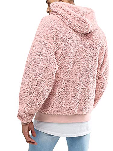 Gemijacka Felpa da uomo con cappuccio, in pile Teddy, con tasche, Colore: rosa., L