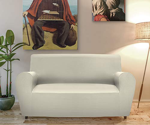GEMITEX Magico COPRIDIVANO 3 POSTI in Tessuto Tinta Unita ED Elasticizzato, Polyester, Panna, Schienale Fino A 240 CM