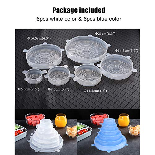 GEMITTO 12 Pz Coperchi in Silicone Estensibile, Riutilizzabile Silicone Ciotola Tazza Jar Can Pot Risparmio di Cibo Coperchi Stretch Copertura Wrap BPA Free 6.5cm/9.5cm/11.5cm/14.5cm/16.5cm/21cm
