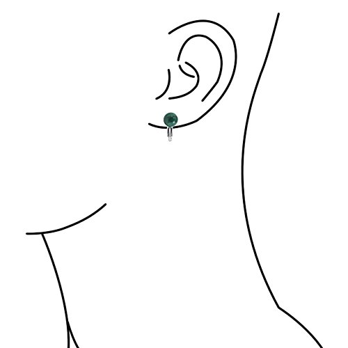 Gemma Malachite Verde Palla Rotonda Stud Clip Su Orecchini Per Le Donne Non Piercing .925 Sterling Silver