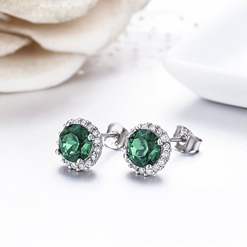 Iris Gemma, Orecchini a bottone, Da donna, In argento Sterling 925, Realizzati da esperti, Con cristalli Swarovski e zircone AAA e Argento, colore: Green, cod. IGEU001