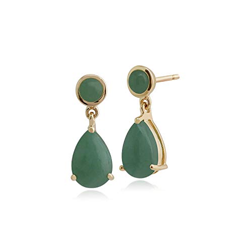 Gemondo Giada Verde Orecchini, 9ct Oro Giallo 3.33ct Giada Verde Orecchini A Goccia