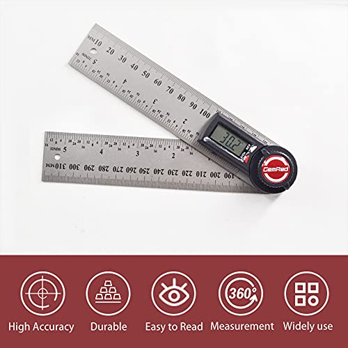 Design con dettagli umanizzati: 150 mm, corto e leggero, con una sola mano, facile da trasportare. ☆ Funzione di blocco: per leggere facilmente, il goniometro digitale GemRed può essere bloccato a qualsiasi angolazione. ☆ Corpo del righello in acciaio inox opaco appositamente trattato: il corpo del righello non riflette la luce, ogni angolo può essere chiaro ☆ Tipo più grande e più audace del righello: lettura più nitida. Bordo rotondo: protegge le dita