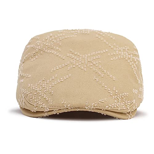 GEMVIE-Coppola in Cotone Strisce Berretto Cappello Piatto da Uomo Donna Unisex Cowboy Basco con Visiera Tinta Unita Newsboy cap (Cachi)