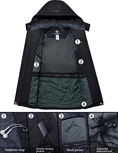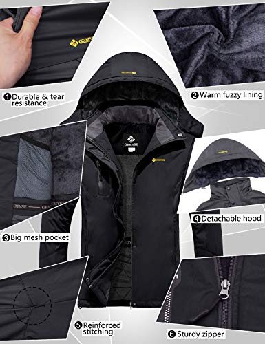 GEMYSE Donna Giacca da Sci Impermeabile Montagna Giacche Pile Invernale Antivento Cappotto con Cappuccio (Nero,2XL)