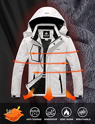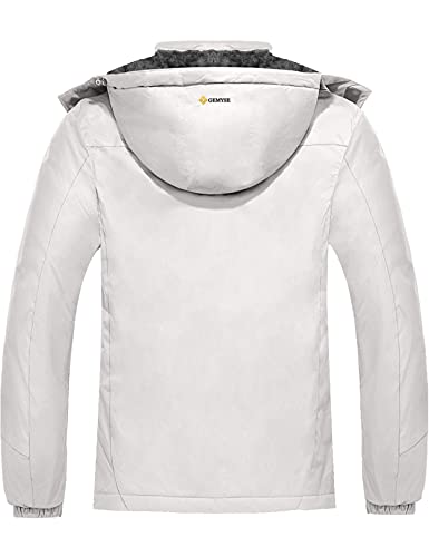 GEMYSE Uomo Giacca da Sci impermeabile montagna Giacche Pile invernale antivento Cappotto con Cappuccio (Bianco 02,XL)