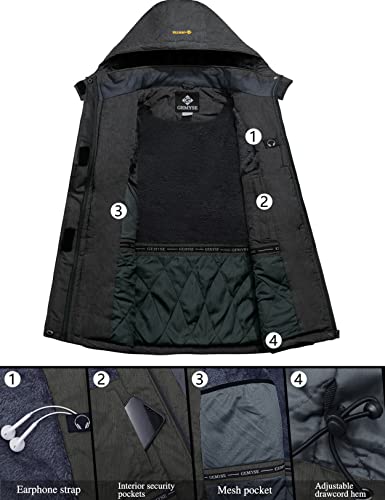 GEMYSE Uomo Giacca da Sci impermeabile montagna Giacche Pile invernale antivento Cappotto con Cappuccio (Grigio Grafite,XL)