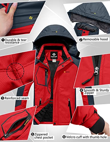 GEMYSE Uomo Giacca da Sci impermeabile montagna Giacche Pile invernale antivento Cappotto con Cappuccio (Rosso Grigio,2XL)