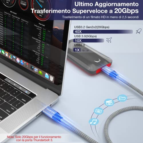 Cavo da USB C a USB C 20 Gbps 100 W, cavo USB 3.2 Gen2x2 con trasferimento dati, ricarica rapida PD 5A, uscita video 5K 4K@60 Hz per MacBook Air, Samsung S21 S22, SSD T5 T7 X5, Hub, Monitor (1m)