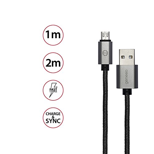 Geneeo Cavo Micro USB Carica Rapida in Nylon Intrecciato da 1 m con connettore in Alluminio, Cavo di Ricarica per Android, Samsung, HTC, Nexus, Nokia, Motorola, Huawei, LG, Kindle ECC.