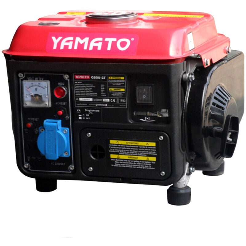 Caratteristiche: Potenza: nom. 650W., max 800W. - Monocilindrico, raffreddamento aria - Cilindrata 63 cc. - Serb. carburante 4lt. - Autonomia: 8h potenza media, 4h potenza max - Miscela 50:1 - Tensione uscita 12VDC/8,3A - Peso 16,5 kg. - Accessori: cavo 12VDC, 1 cacciavite, 1 chiave Potenza max 0,8 kw. Motore 2T-2 Hp Dimensione 38x32x33 cm.