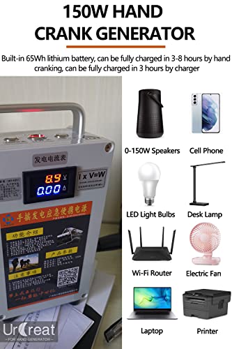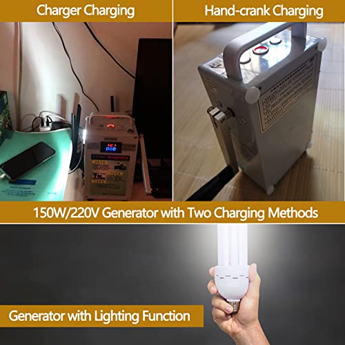 150w 220v Generatore a Manovella Portatile, 12v Manuale Generatore di Corrente a Manovella, Elettrico Ricaricabile Generatore a Manovella Dinamo con Usb/Ac220v/12v Presa, con Batteria