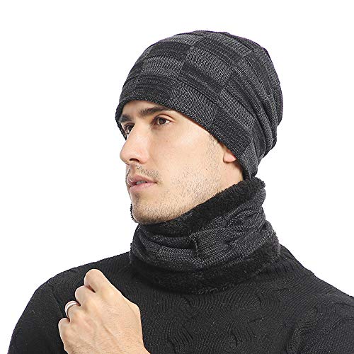 Generi Berretto Lungo Slouch,Compagno Caldo Berretto Foderato Berretto Invernale Beanie Modello Intessuto con Soffice Fodera Interna in Pile (Grigio)