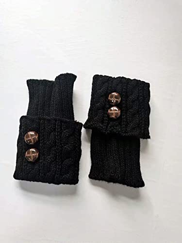 Generi 2 paia Scaldamuscoli da Donna Lavorati a Maglia per Stivali Invernali Polsini Lavorati a Maglia a Torsione Calze Calde Stivali Corti Polsini All'uncinetto per Le Donne (Nero e grigio)