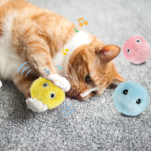 Generic 3pcs Cat Toys Balls Squeaky Fluffy Plush Cat Toys Battery Operated Cat Interactive Toys Balls con Smart Trigger Cat Catnip Balls Real Animal Calls Sound Toys for Indoor Home Play