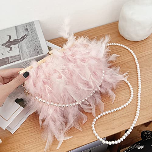 Generic Borsa da Sera per Cena da Donna Borsa con Pochette in Piuma Borsa da Banchetto Borsa a Tracolla con Catena di Perle Borsa a Tracolla da Cerimonia Nuziale Bianca 2#