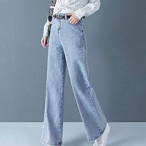 Generic Brands Jeans Casual da Donna Decorazione Tascabile Pantaloni Larghi in Denim Pantaloni Larghi a Gamba Dritta per Tutti i Giorni
