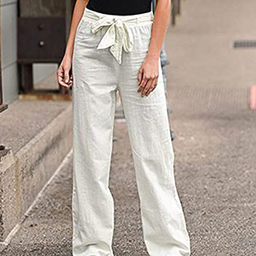 Generic Brands Pantaloni Larghi da Donna Pantaloni in Cotone-Lino Elastico in Vita Larghi Dritti Casual Stile Semplice Pantaloni a Figura Intera