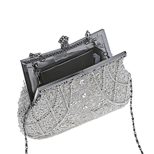 Generic Donna Signora Pochette da Giorno Perline Borsa Da Sera Partito Festa Di Nozze Borsetta Portafoglio - Argento
