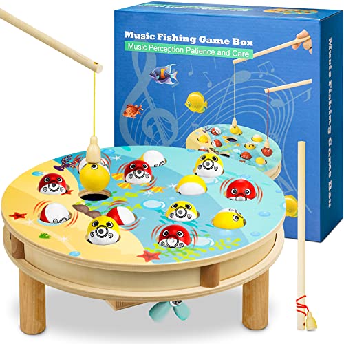 Generic Gioco di Pesca per Bambini Giochi Montessori Giocattolo da Pesca Magnetico in Legno con Musica Regalo Educativo