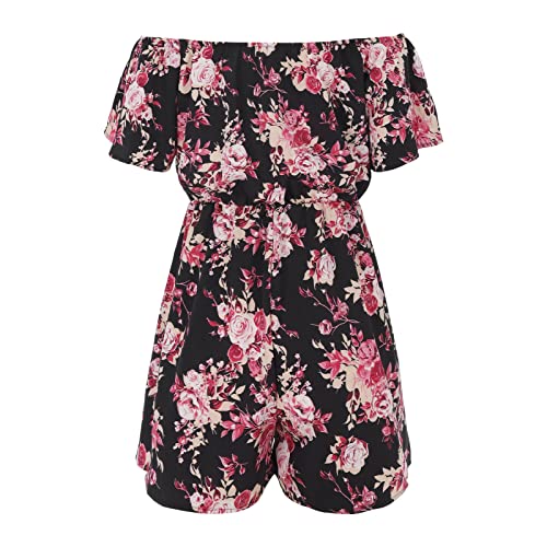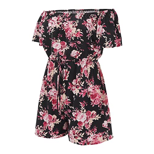 Generic Pantaloni estivi regolabili da donna, tutina a maniche corte, stampa corta, tuta floreale da donna, Nero, L