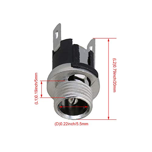 Generic 5.5 mmx2.1 mm DC presa jack adattatore di alimentazione in metallo, confezione da 10