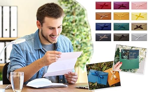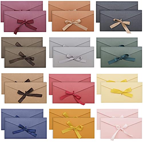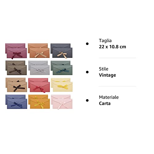 【MULTI-COLOR】 12 colori, un set completo contiene 24 buste colorate. Ogni busta ha un nastro dello stesso colore, che può essere utilizzato per legare un fiocco elegante, classico ed elegante.