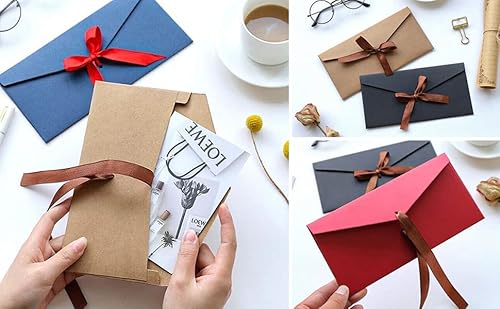 【PICCOLO E SQUISITO】 La dimensione della busta della cartolina è 22x10,8 cm, il nastro è lungo 48 cm ed è facile da montare. Busta DNI-DL. La carta spessa da 250 g / ㎡ è più nobile e unica.