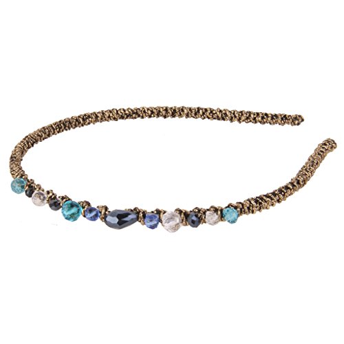 Generic Nero e Oro Filo Ritorto Fascia per Capelli Archetto Alice Banda w/Cristalli Irregolari Blu Reale