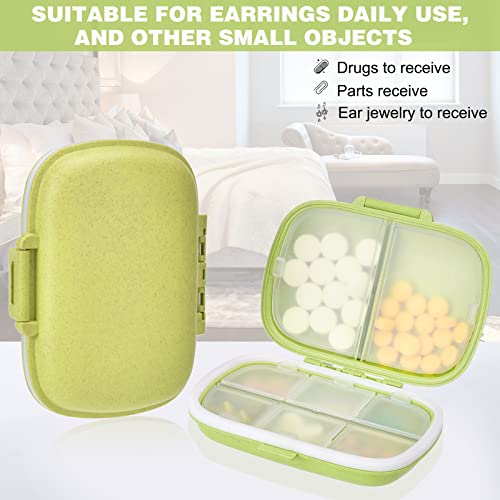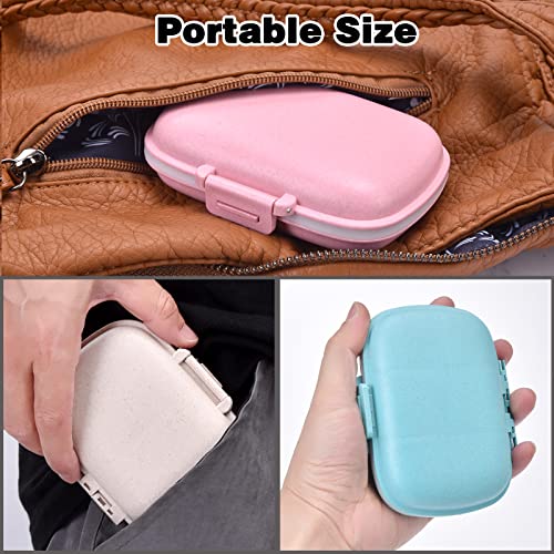 【4 Pezzi Pillole Organizzatore 】Questo set di organizzatori di pillole contiene 4 scatole di pillole (Blu + Verde + Khaki + Rosa) in fibra di grano alimentare ed ecologico, sicuro e BPA free, forte e durevole. Contiene una guarnizione in silicone, che impedisce allumidità di entrare, mantiene le pillole asciutte, è resistente allumidità, igienico e sigillato. Ogni portapillole è composto da 6 scomparti piccoli e 2 grandi per pillole e vitamine di diverse dimensioni.