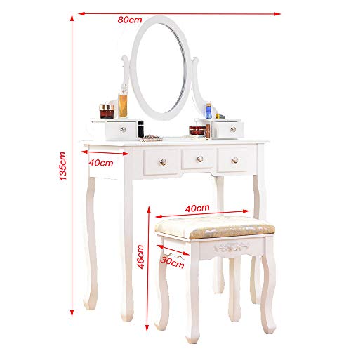 Generic specchio Bedroomdesk con sgabello specchiera con sgabello bianco cassetti e trucco da tavolo ovale specchio camera da letto bianco Dressi