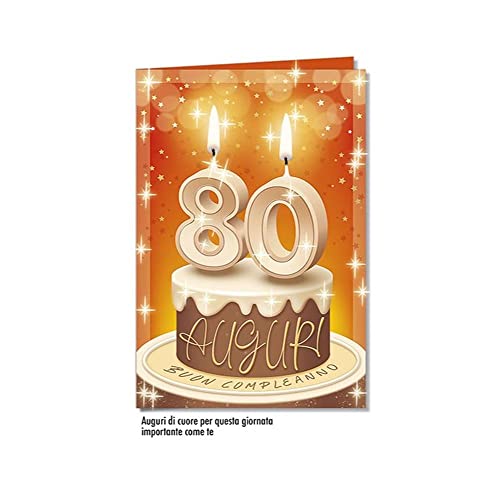 BIGLIETTO AUGURI compleanno 80 ANNI con torta e candeline