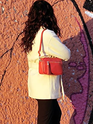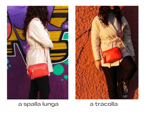 Generico -Borsa tracolla donna - Borsetta Tracolla Donna Piccola in Vera Pelle Made in Italy con Cerniera e Tracolla regolabile-Pochette tracolla donna piccola con tasca frontale (Rosso)