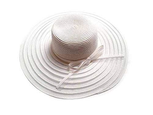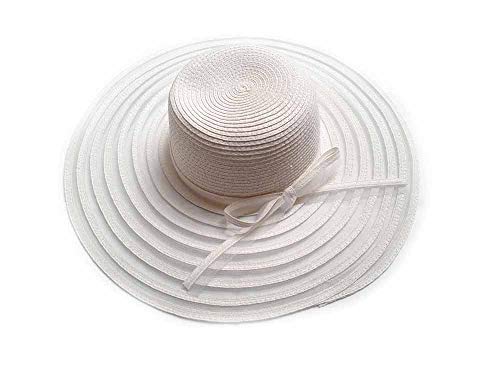 Generico Cappello Bianco Donna Elegante Cerimonia Falda Larga Ala 12cm Made in Italy in Omaggio amuleto Portachiavi Corno