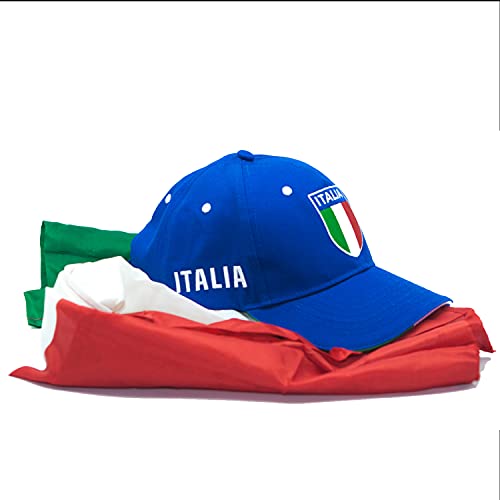 Generico Kit Cappello Italia con Visiera, Nazionale Italiana, con Logo Tricolore, Bandiera Italia Tricolore 70x100cm.