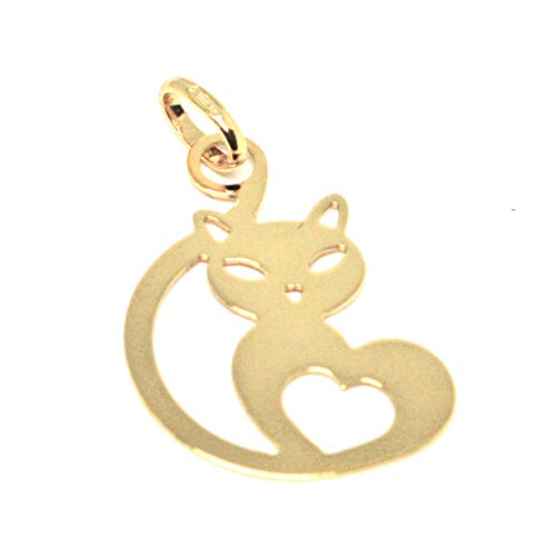 CIONDOLO A GATTO IN ORO 18K 750 STILIZZATO GATTINO CON CUORE MADE IN ITALY