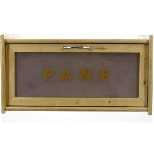 Generico Contenitore Cestino Portapane in LEGNO XL Coperchio con VETRINA Rettangolare per Pane 38x22x20 cm APERTURA con finestra trasparente con scritta PANE
